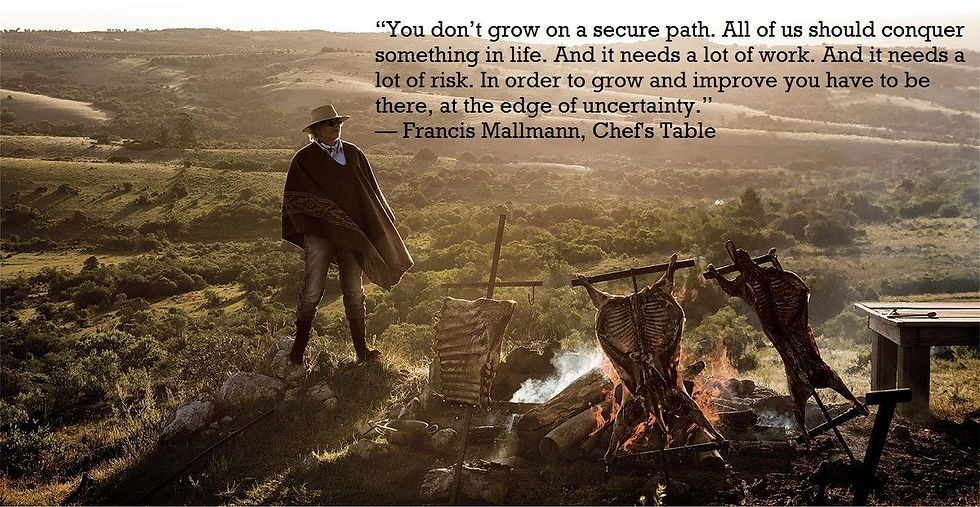 You don't grow on a secure path. All of us should conquer something in like. And it needs a lot of work. And it needs a lot of risk. In order to grow and improve you have to be there, at the edge of uncertainty -Francis Mallmann-